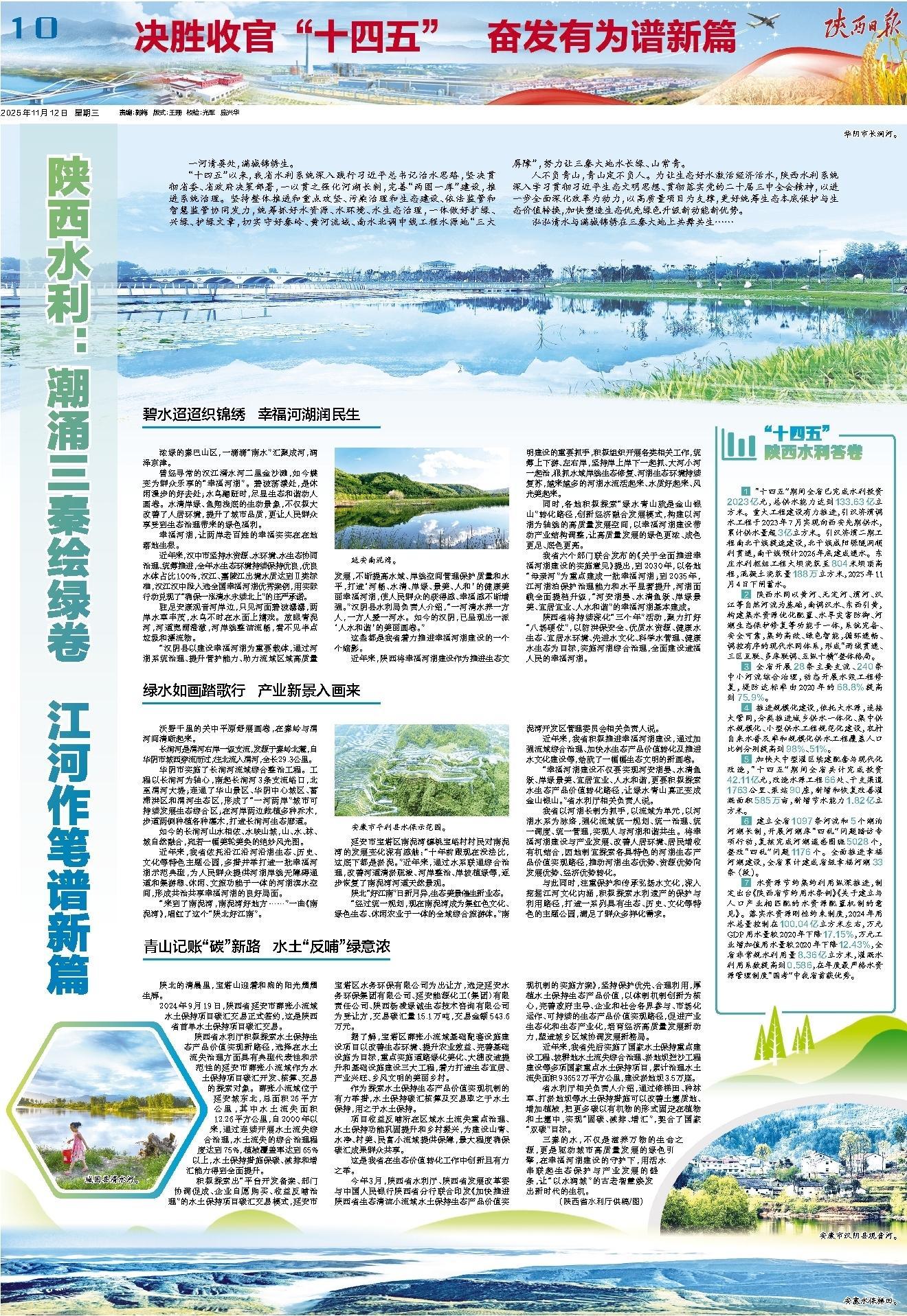 “十四五”以来,我省水利系统深入践行习近平总书记治水思路,坚决贯彻省委、省政府决策部署,一以贯之强化河湖长制,完善“两图一库”建设,推进系统治理。坚持整体推进和重点攻坚、污染治理和生态建设、依法监管和智慧监管协同发力,统筹抓好水资源、水环境、水生态治理,一体做好扩绿、兴绿、护绿文章,切实守好秦岭、黄河流域、南水北调中线工程水源地“三大屏障”,努力让三秦大地水长绿、山常青。
