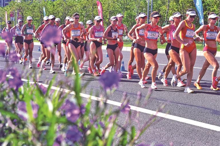11月12日,第十五届全国运动会竞走项目男子、女子20公里比赛在珠海“最美滨海赛道”金湾路举行。图为比赛现场。 本报记者 肖阳熠摄