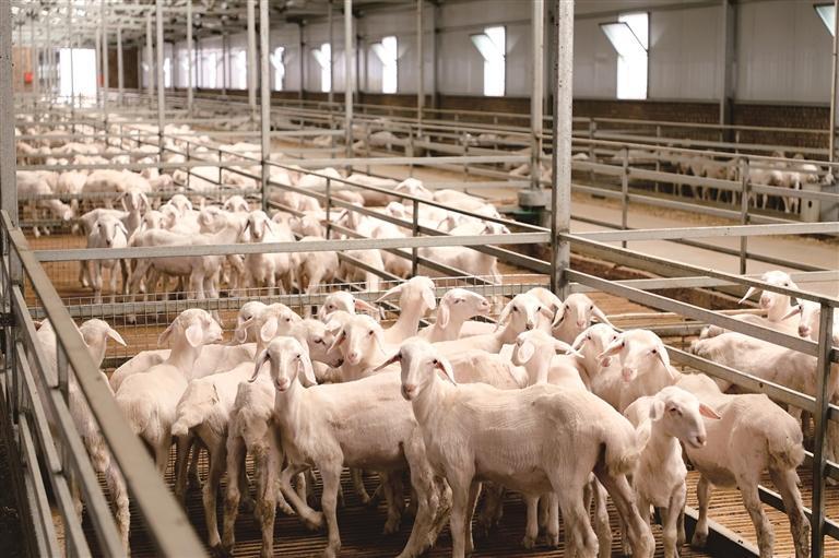 在金鸡滩15万只湖羊养殖基地,一排排现代化羊舍整齐排列,繁育场、育肥场、有机肥加工厂、饲草料加工厂、青贮区等功能区一应俱全,全自动化的供料、清粪、换风设备有序运转,为湖羊健康生长创造了优良环境。