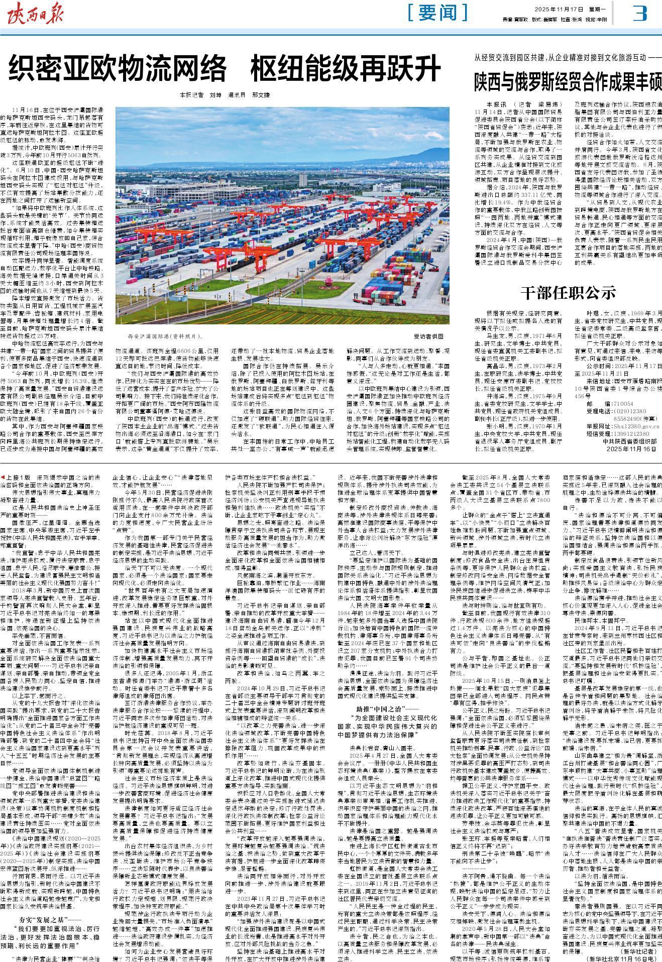 中欧班列(西安)的畅通运行,改变了陕西本土企业的“出海”模式。“过去货物出海必须运至沿海港口,如今在‘家门口’就能搭上专列直抵欧洲腹地。”吴乐表示,这条“黄金通道”不仅提升了效率,还带动了一批本地物流、贸易企业落地生根、发展壮大。