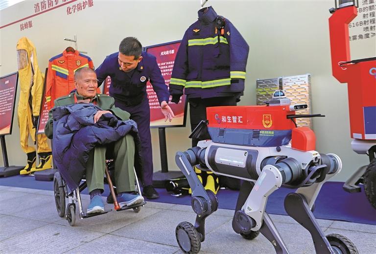 特展的演示区,消防特种机器狗沉稳迈步,智能消防无人机“严阵以待”。这些高精尖装备,在人类难以抵达的危险地带,筑起守护平安的新防线。