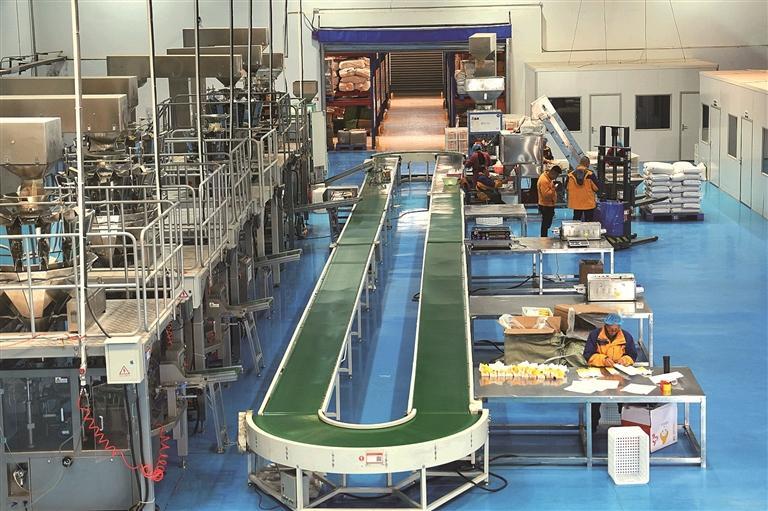 十一月十一日,陕西青创联盟电子商务有限公司食品加工车间,工作人员在包装产品。 本报记者 王晨曦摄