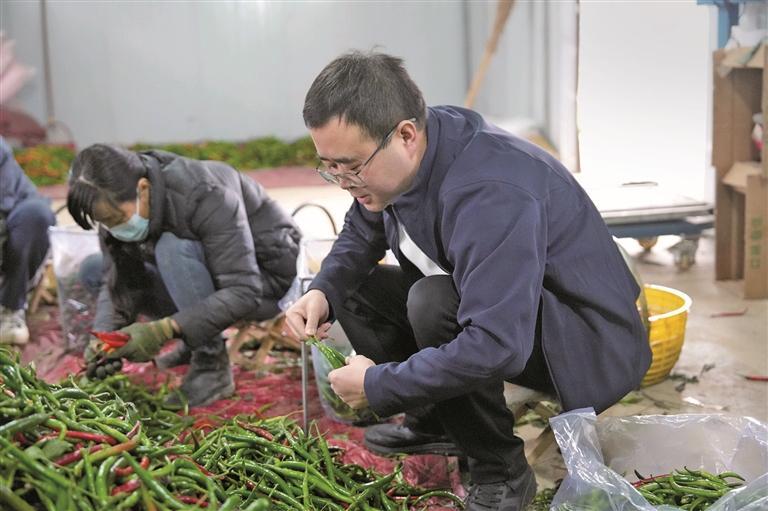 11月16日,宜君县五里镇雷声村种植基地的大棚里,村党支部书记田磊仔细查看辣椒长势。如今,基地的农产品不愁卖,田磊把更多的精力放在提升品质、叫响品牌上。然而,几年前,田磊还是另一种心境。