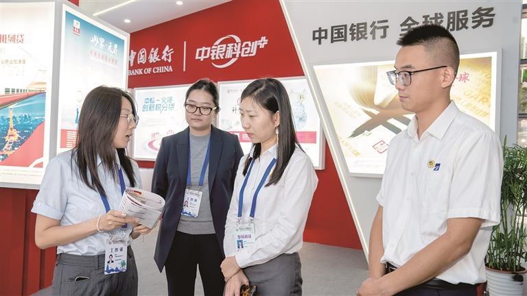 陕西中行员工为客户介绍科技金融授信产品。