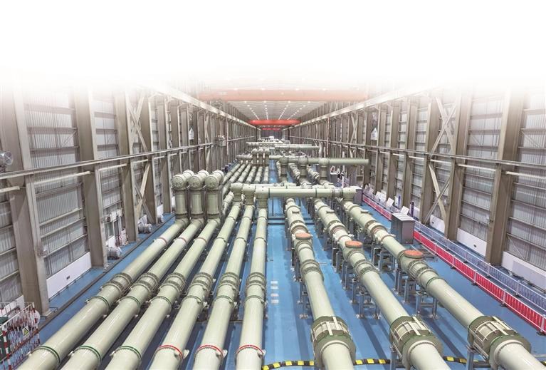 11月19日,在宝塔山±800千伏换流站建设现场,GIS设备在有序安装。本版照片均由本报记者 田若楠摄