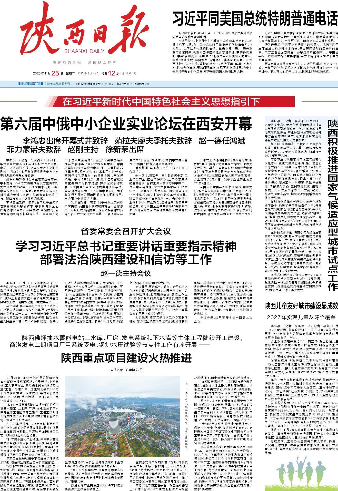 本报讯 11月24日,省委常委会召开扩大会议,学习习近平总书记近期重要讲话重要指示精神,研究我省贯彻落实措施,审议《信访积案攻坚专项工作方案》,部署法治陕西建设、化解土地征收安置补偿和逾期交房信访问题等工作。省委书记赵一德主持会议。