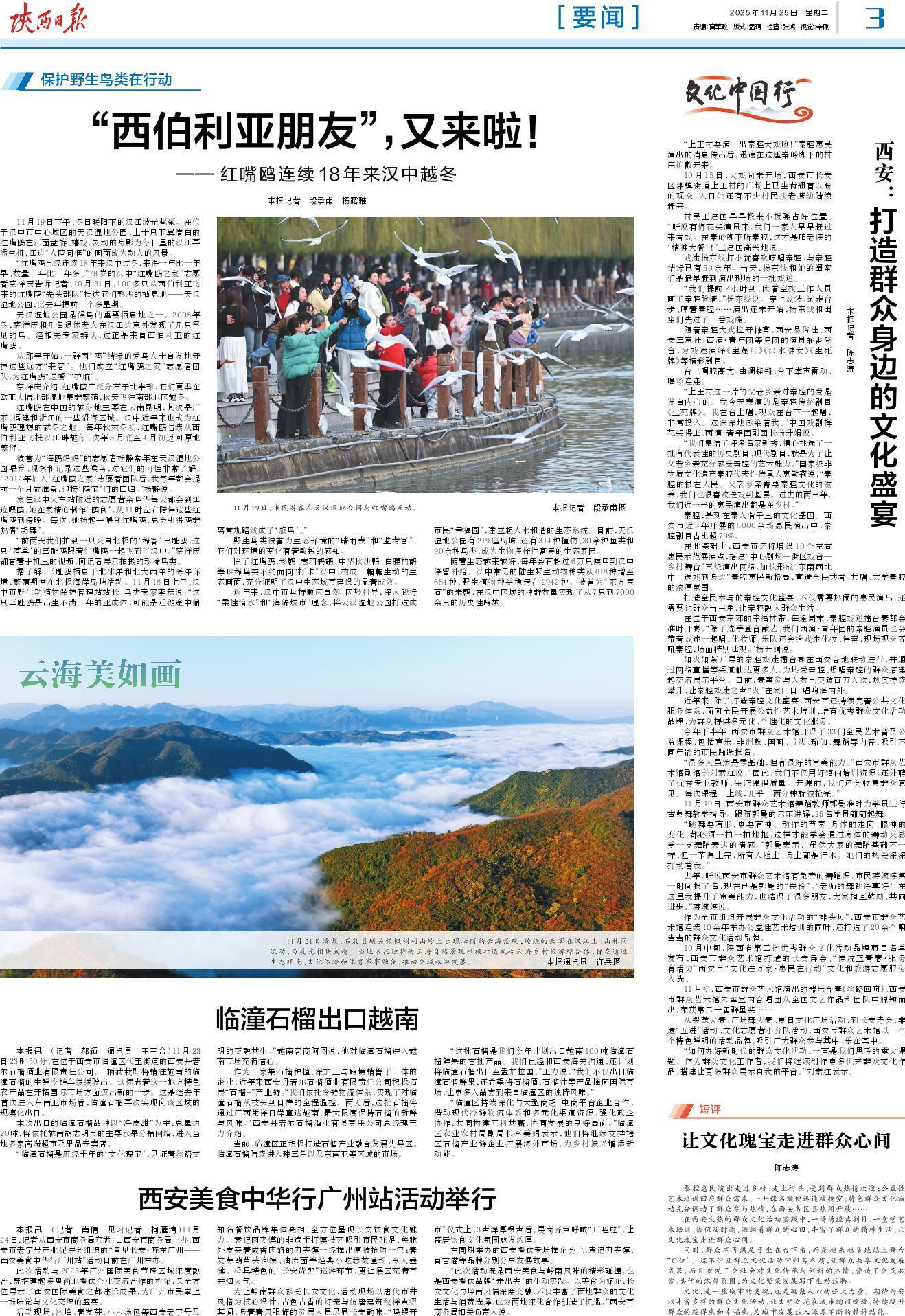11月21日清晨,石泉县城关镇枫树村山岭上出现壮丽的云海景观,缭绕的云雾在汉江上、山林间流动,与晨光相映成趣。当地依托独特的云海自然景观积极打造枫岭云海乡村旅游综合体,旨在通过生态观光、文化体验和体育赛事融合,推动全域旅游发展。 本报通讯员 许兵摄
