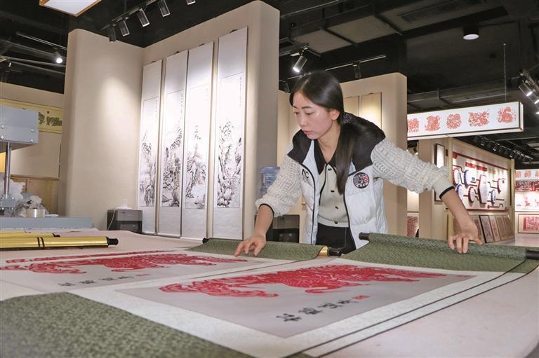 居民闫彩虹此前在家当“全职妈妈”,如今在剪纸工厂工作。“家门口”的这份工作,对她来说十分难得。“一把剪刀成了‘金饭碗’,手艺变收入,心更踏实了。”闫彩虹说。