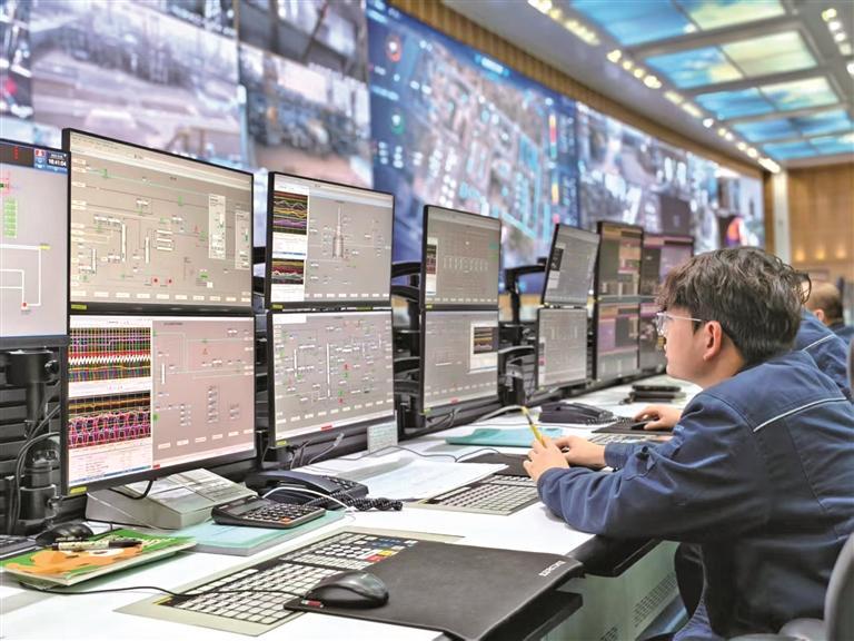 智能化技术的落地,为关键生产环节带来了革命性变化。在甲醇中心,8套核心气化炉的运行状态,可通过高清可视化摄像头和红外热成像系统24小时实时监测。“我们自主研发的AI智能分析系统能同时处理200多个监测点位的视频数据,精准识别跑冒滴漏、温度异常等潜在隐患并自动预警。”吴晓晨指向屏幕上的监测界面介绍,“AI带来的变革性价值,核心在于持续挖掘生产潜能。目前,我们正在围绕行业应用场景不断优化训练这个大模型,持续探索AI赋能行业高质量发展的更多可能。”