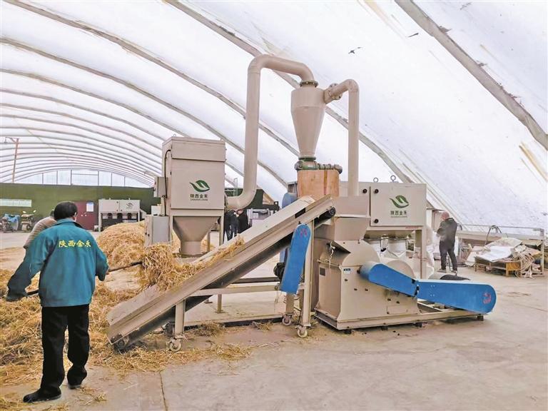 在陕西金禾农业科技有限公司生产基地,工人在加工秸秆纤维粉(资料照片)。 受访单位供图