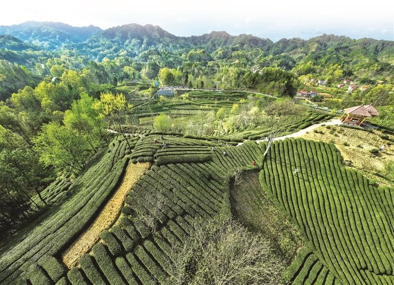 4月3日,航拍的汉中市西乡县峡口镇一处茶园(资料照片)。 本版照片均由本报记者 许奥博摄