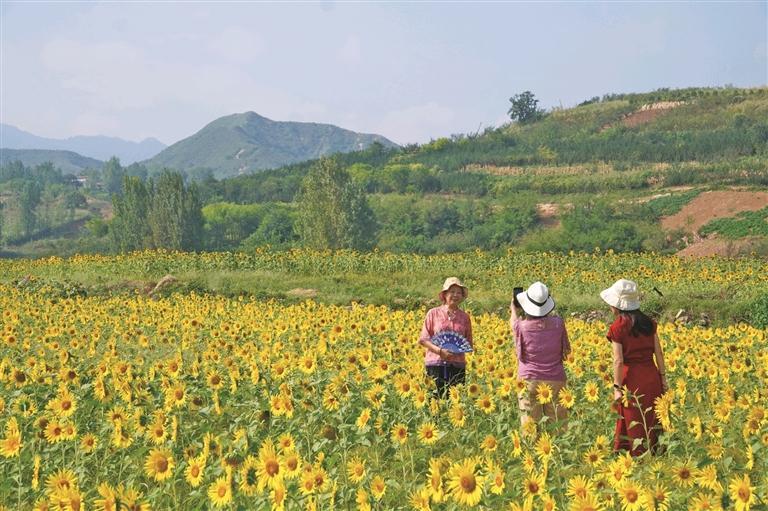 9月8日,蓝田县小寨镇牛心峪村,游客在向日葵花海中拍照(资料照片)。