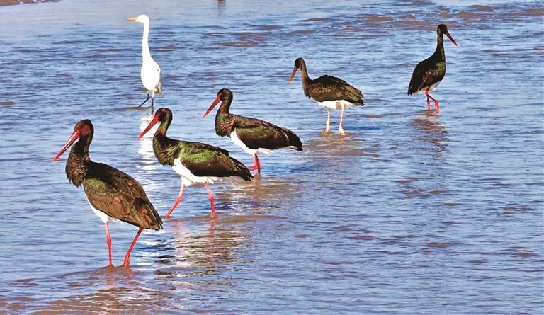 候鸟为何能变“留鸟”?在张彩霞看来,气候变暖带来的环境变化是客观因素,更关键的是,榆林近年来在生态保护方面久久为功:通过持续推进湿地修复、河道清淤、植被恢复等重点工程,境内河流湖泊的鱼虾种群数量显著增长,水环境质量大幅改善,为黑鹳打造了稳定可靠的食物库与栖息地。正是这样的生态“沃土”,让黑鹳选择留下来。
