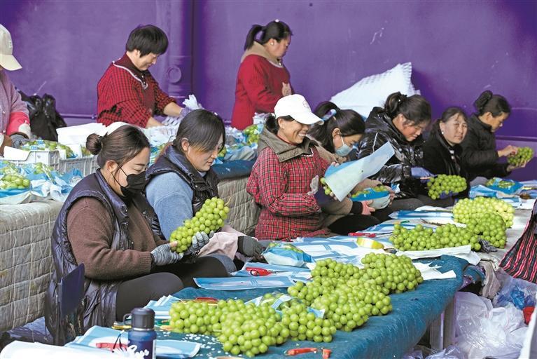 袁博介绍,作为“中国葡萄之乡”,临渭区为了进一步提升葡萄质量、拓展销路,今年启动了品牌升级战略,实施从果园管理到分选加工全链条品质管控,实现了临渭葡萄从“种得好”向“卖得远”“叫得响”的华丽转身。截至目前,临渭区葡萄种植面积达26万亩、年产量40万吨,“临渭葡萄”品牌价值达34.99亿元。