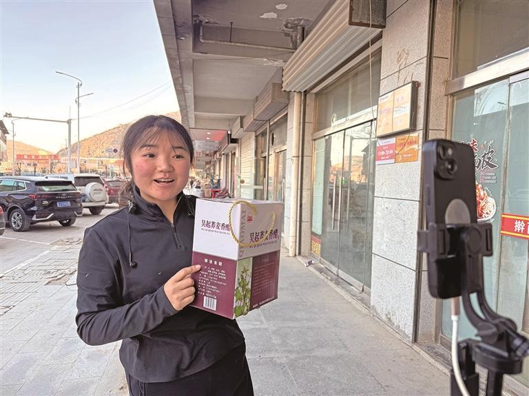 11月21日,自媒体博主许丽萍向网友推介吴起荞麦产品。 本报通讯员 齐玉摄