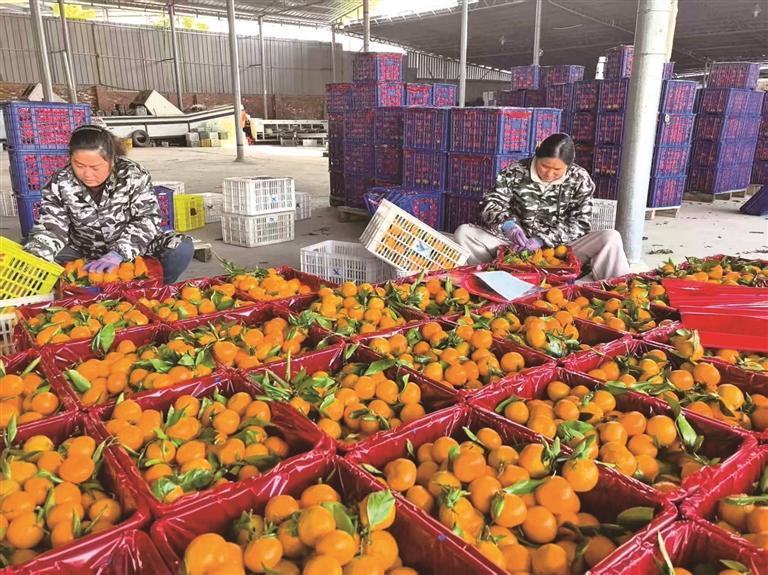 11月19日,花果村柑橘分拣中心的工作人员在分拣蜜橘。 本报通讯员 何祥斌摄