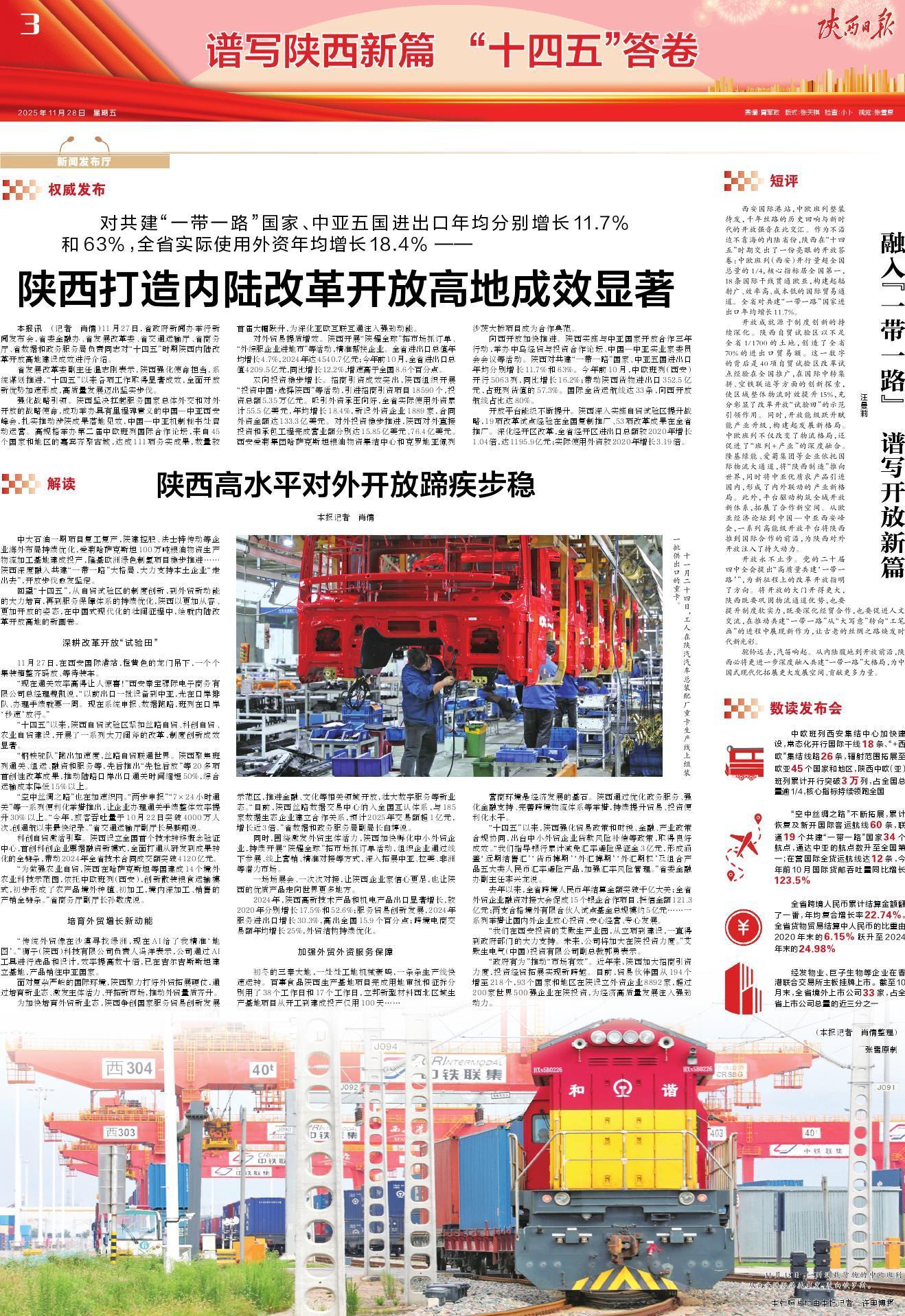 省发展改革委副主任温志刚表示,陕西强化使命担当,系统谋划推进,“十四五”以来各项工作取得显著成效,全面开放新优势加速形成,高质量发展迈出坚实步伐。