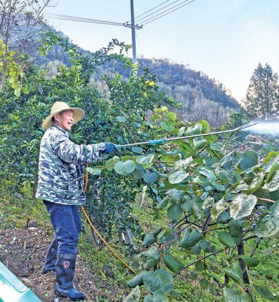 在佐龙镇佐龙村,猕猴桃种植大户袁华正组织工人对园区进行冬季病虫害防治。“修枝可以减少养分消耗,追肥可以补充越冬养分、提高抗寒能力,做好冬管对果园管理至关重要。”袁华说。