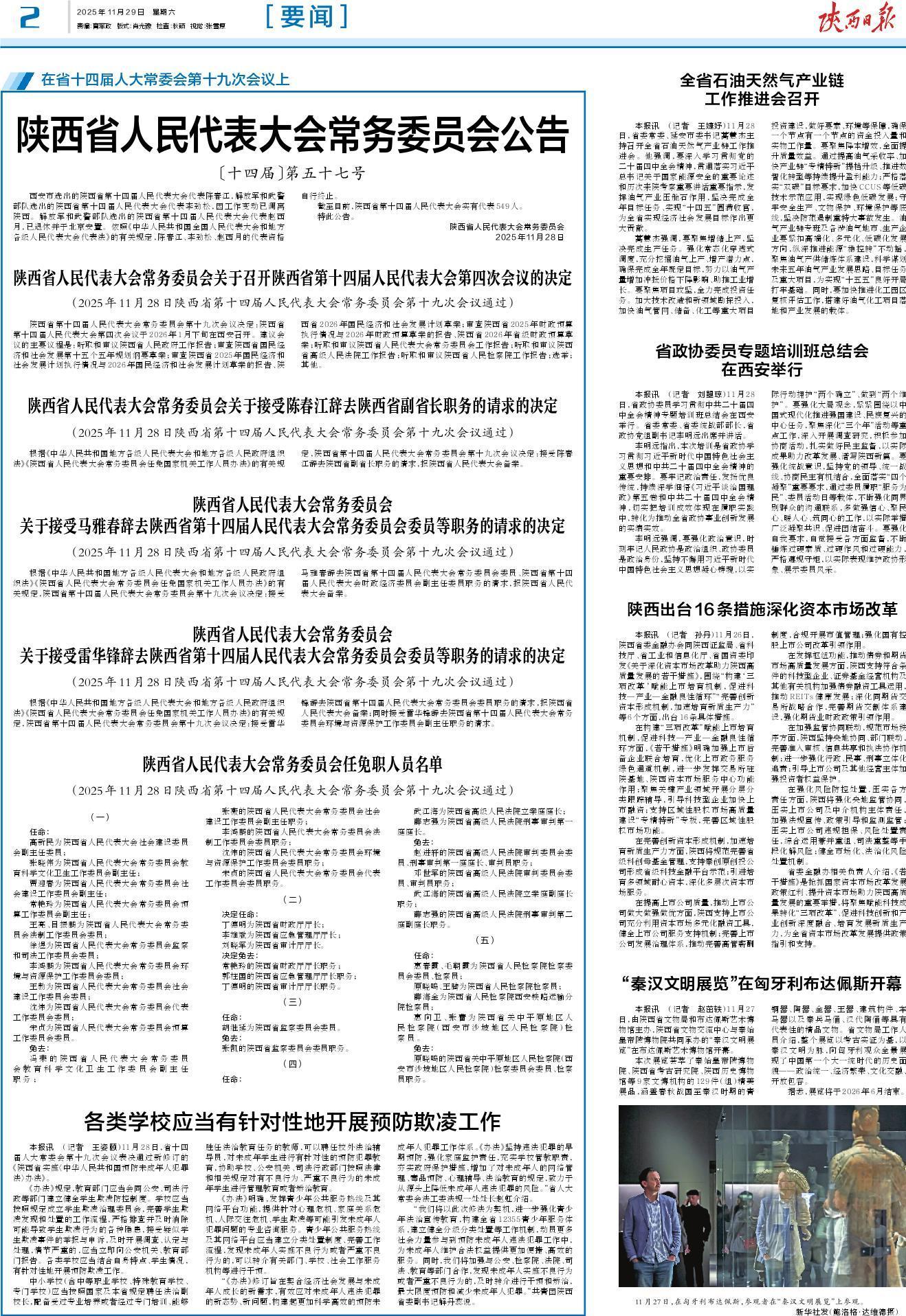 根据《中华人民共和国地方各级人民代表大会和地方各级人民政府组织法》《陕西省人民代表大会常务委员会任免国家机关工作人员办法》的有关规定,陕西省第十四届人民代表大会常务委员会第十九次会议决定:接受马雅春辞去陕西省第十四届人民代表大会常务委员会委员、陕西省第十四届人民代表大会财政经济委员会副主任委员职务的请求,报陕西省人民代表大会备案。