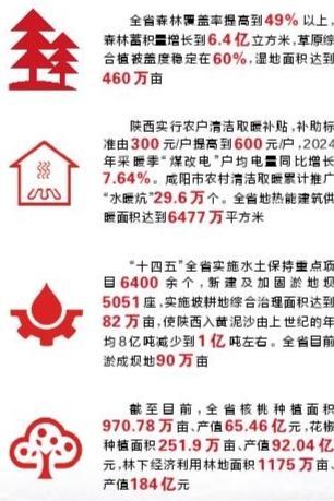 陕西实行农户清洁取暖补贴,补助标准由300元/户提高到600元/户,2024年采暖季“煤改电”户均电量同比增长7.64%。咸阳市农村清洁取暖累计推广“水暖炕”29.6万个。全省地热能建筑供暖面积达到6477万平方米