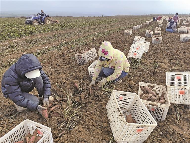 11月20日,永寿县常宁镇强华村群众在红薯基地采挖红薯。本报通讯员 李建龙摄