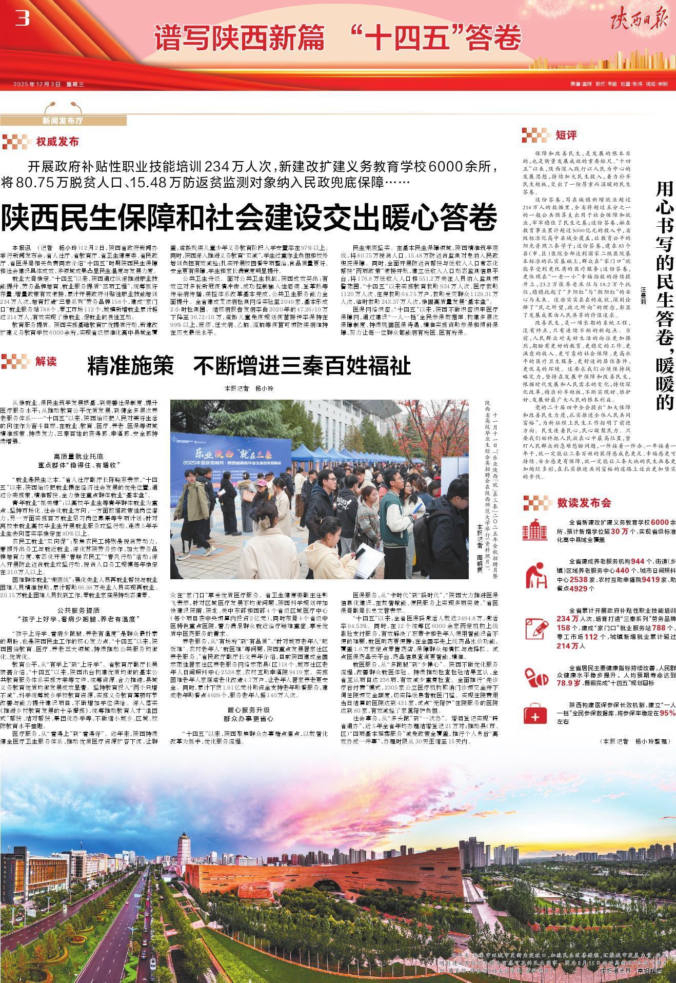 全省累计开展政府补贴性职业技能培训234万人次,培育打造“三秦系列”劳务品牌158个,建成“家门口”就业服务站788个、零工市场112个,城镇新增就业累计超过214万人