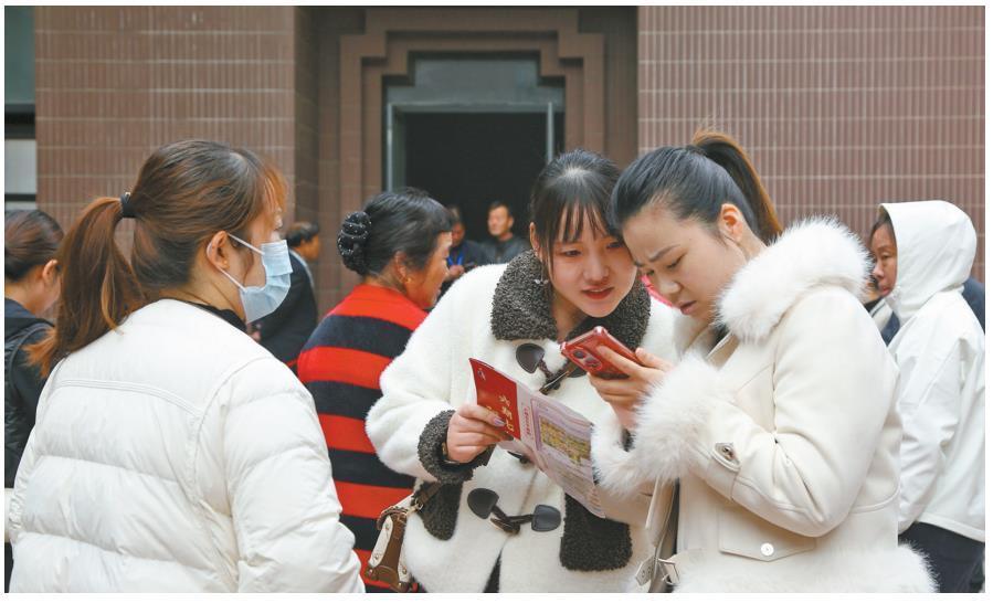 十一月二十八日,回迁群众在查看房源信息。 受访单位供图