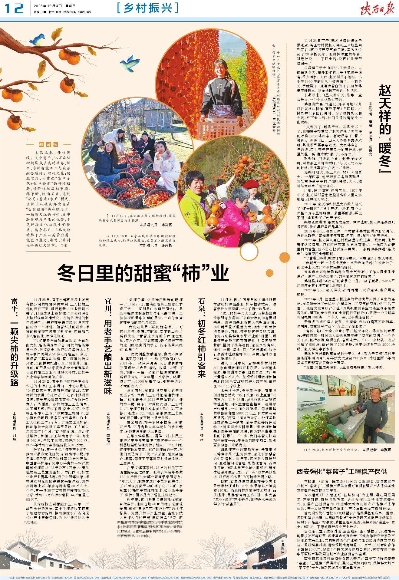 目前,石泉县建成甜脆柿等各类水果示范种植基地12个,水果年总产值突破1亿元。当地将持续做好技术培训、品质提升、品牌培育等工作,进一步完善“农业+旅游”产业链条,让特色水果成为群众的“致富果”。