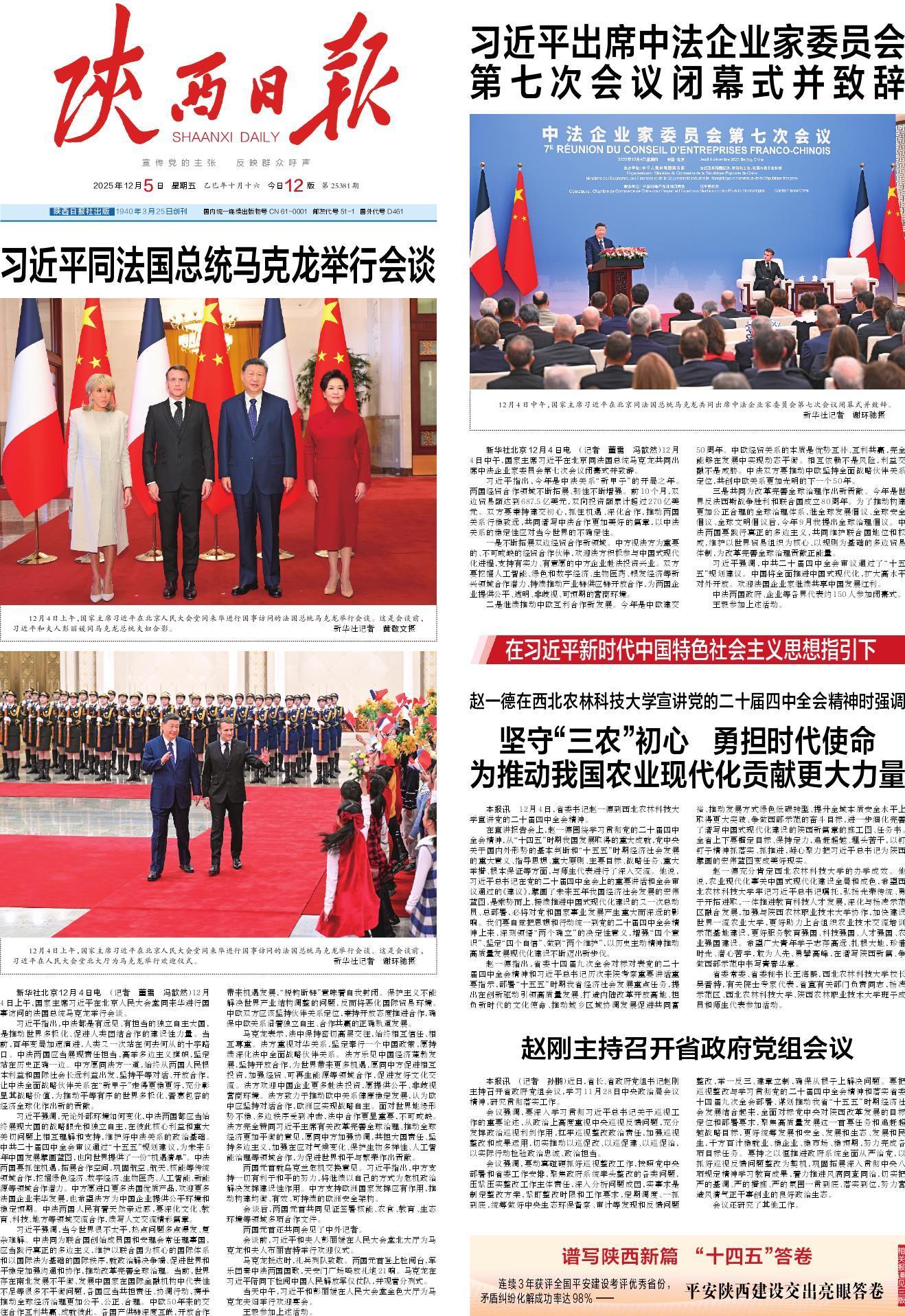 赵一德指出,省委十四届九次全会对标对表党的二十届四中全会精神和习近平总书记历次来陕考察重要讲话重要指示,部署“十五五”时期我省经济社会发展重点任务,提出在创新驱动引领高质量发展、打造内陆改革开放高地、担负新时代的文化使命、推动城乡区域协调发展促进共同富裕、推动发展方式绿色低碳转型、提升全域本质安全水平上取得更大突破、争做西部示范的奋斗目标,进一步细化完善了谱写中国式现代化建设的陕西新篇章的施工图、任务书。全省上下要锚定目标、保持定力,追赶超越、埋头苦干,以钉钉子精神抓落实、抓推进,凝心聚力把习近平总书记为陕西擘画的宏伟蓝图变成美好现实。
