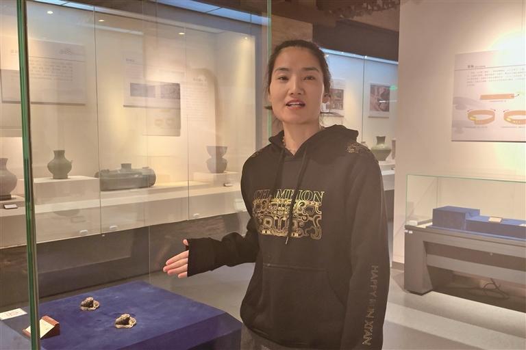 12月3日,崔杰舒介绍错金银虎镇。 本报记者 孙亚婷摄