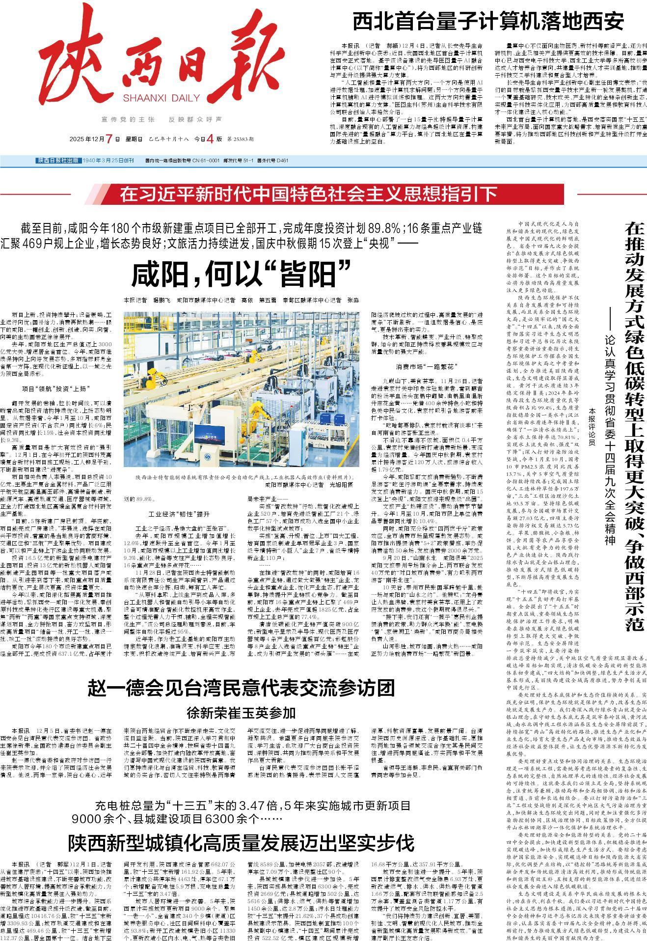 中国式现代化是人与自然和谐共生的现代化,绿色发展是中国式现代化的鲜明底色。省委十四届九次全会提出“在推动发展方式绿色低碳转型上取得更大突破、争做西部示范”目标,并作出了系统安排部署。这个目标的实现,必将为推动陕西高质量发展注入更多绿色动能。
