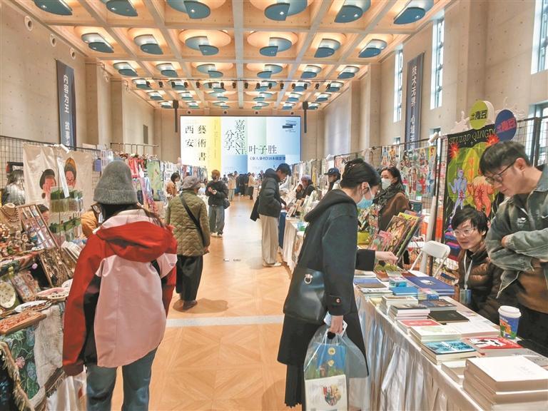 12月5日,第四届西安艺术书展在西影电影园区开幕。全国各地一大批艺术创作者及出版机构汇聚于此,通过艺术书刊、独立杂志、插画手作、摄影影像等多元形式,构建起可触摸的沉浸艺术体验空间。图为观众在现场参观。据了解,书展将持续至7日。 本报记者 师念摄