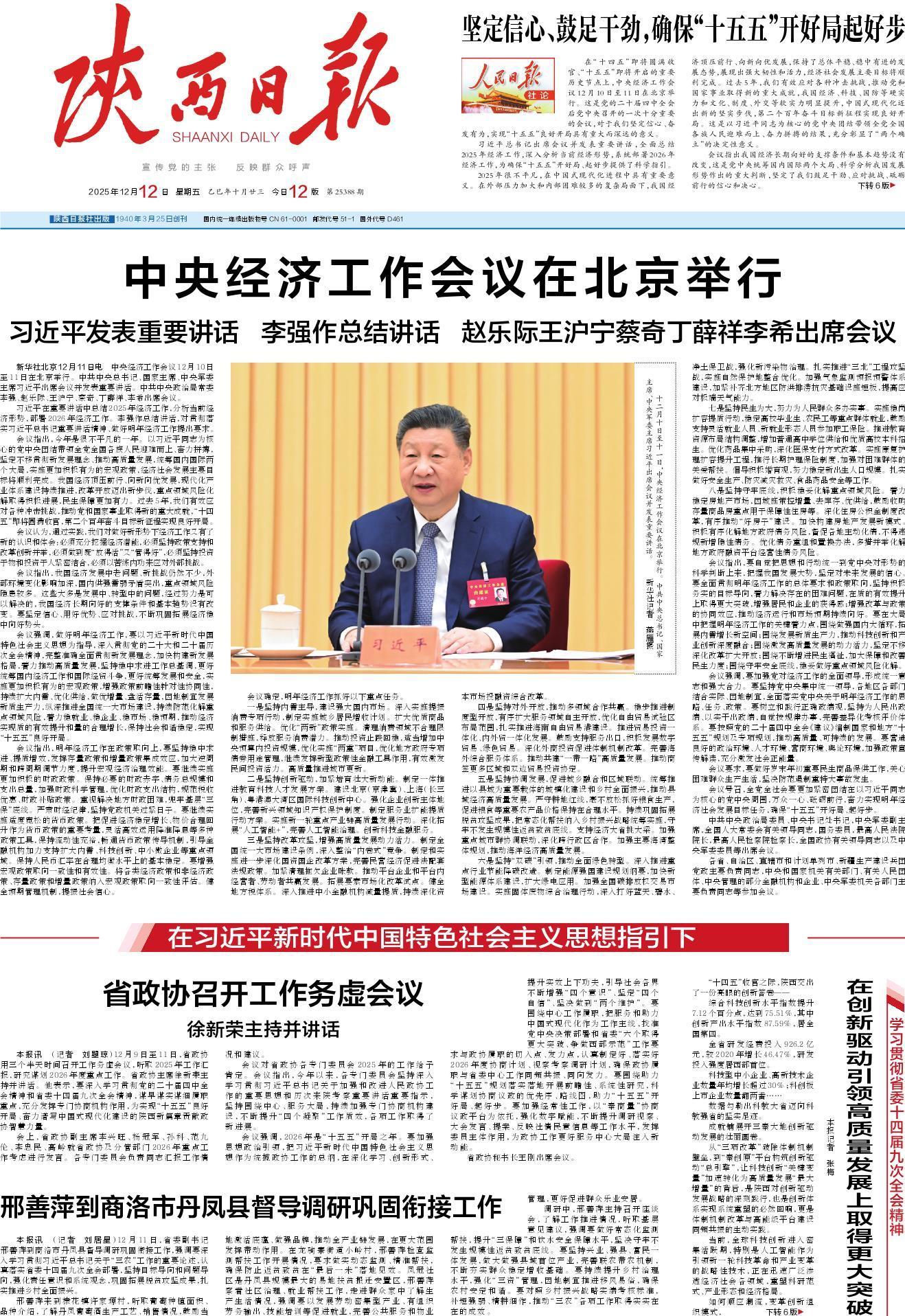 省委十四届九次全会审议通过的《中共陕西省委关于制定国民经济和社会发展第十五个五年规划的建议》,明确提出“在创新驱动引领高质量发展上取得更大突破、争做西部示范”。