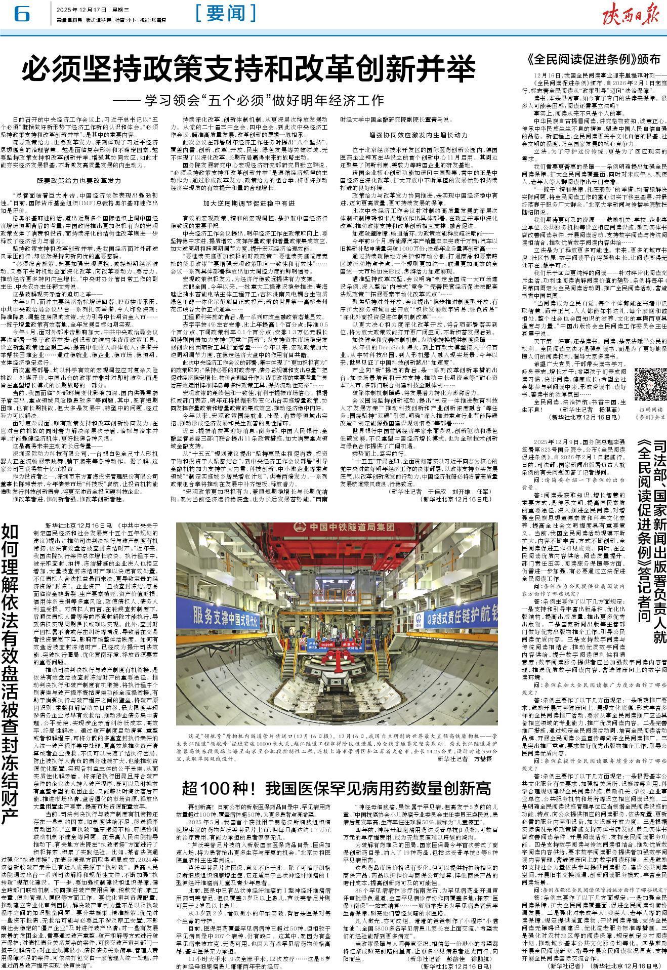 此次中央经济工作会议针对制约高质量发展的深层次体制机制障碍和卡点堵点作出具体部署,在破立并举中深化改革,推动政策支持和改革创新相互支撑、融合促进。