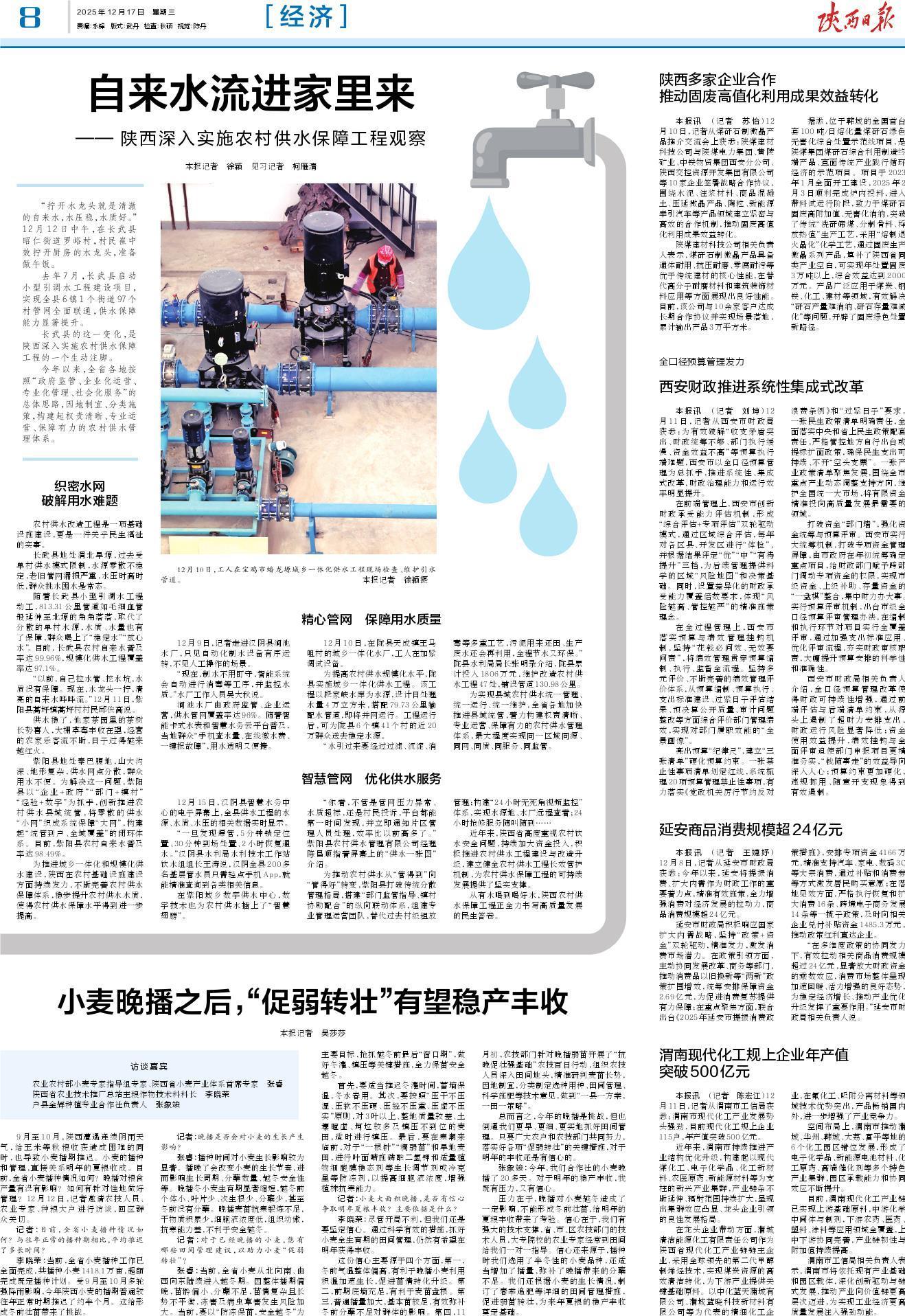 从有水喝到喝好水,陕西农村供水保障工程正全力书写高质量发展的民生答卷。