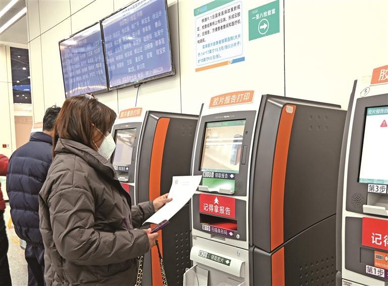 12月15日,患者在宝鸡市中医医院自助机终端上取检查报告单。