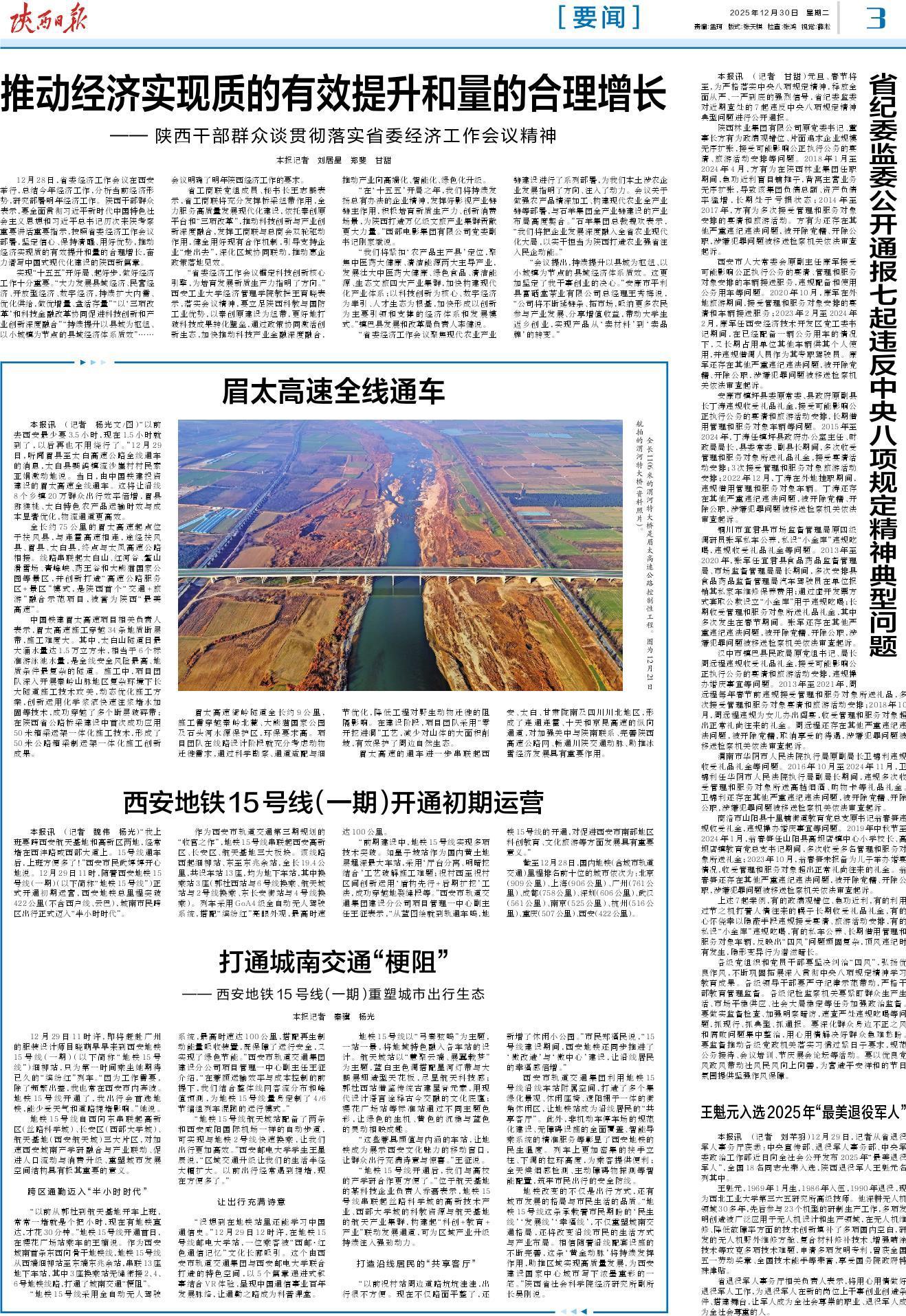 实现“十五五”开好局、起好步,做好经济工作十分重要。“大力发展县域经济、民营经济、开放型经济、数字经济,持续扩大内需、优化供给,做优增量、盘活存量”“以‘三项改革’和科技金融改革协同促进科技创新和产业创新深度融合”“持续提升以县城为枢纽、以小城镇为节点的县域经济体系质效”……会议明确了明年陕西经济工作的要求。