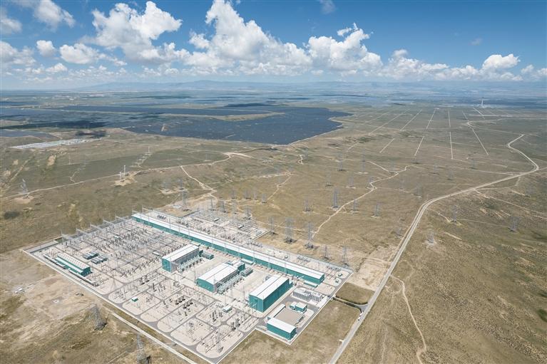 这是在青海省海南藏族自治州共和县拍摄的±800千伏特高压青南换流站(2025年7月25日摄)。 新华社记者 孙瑞博摄