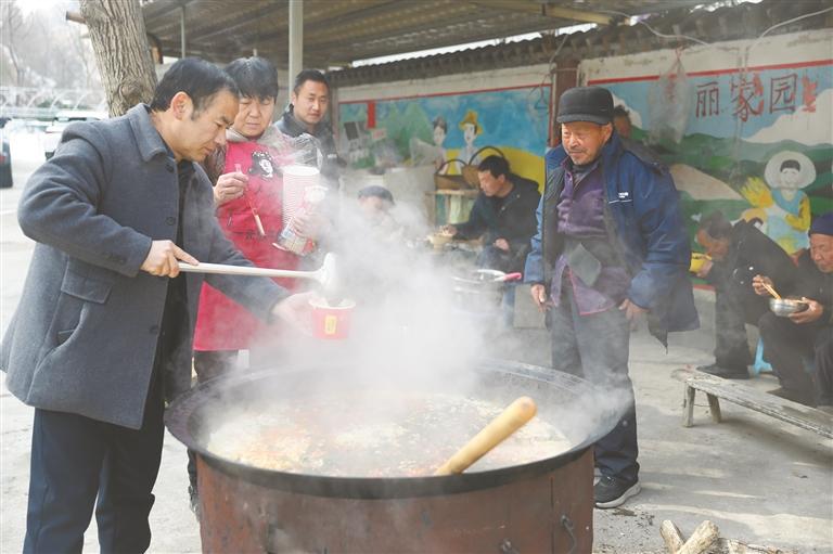 1月23日中午,大庄村村民褚世兴端着一碗热气腾腾的麻食说:“饭吃下去,全身都暖了。饭菜顿顿不重样,荤素都有,很适合老人吃。”