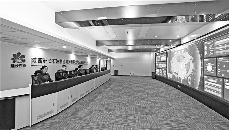 延长石油物流集团调度中心员工正通过智能物流平台对运行车辆进行实时在线管控。