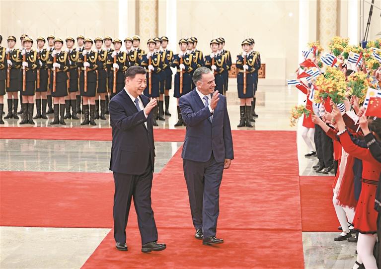 会谈前,习近平在人民大会堂北大厅为奥尔西举行欢迎仪式。