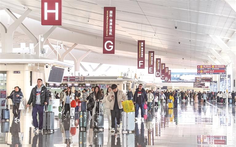 2月2日,西安咸阳国际机场T5航站楼人潮涌动。 本报通讯员 李宜鹏摄