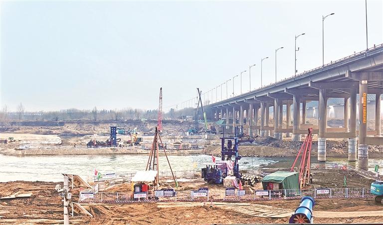 2月2日,福银高速西安至永寿段改扩建工程渭河特大桥施工现场。