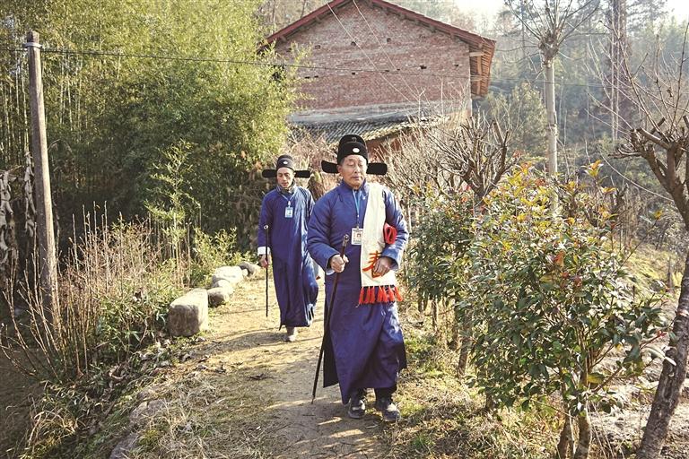 1月24日,秦巴山间晨霜未散,汉中市南郑区法镇的崎岖山道上,春倌周廷怀与周保成父子已踏上行程。二人身着靛蓝布衣,左手持春牛,右手执孝春棒,怀揣印着节气农时的红色春帖,开启了又一天的“说春”之行。