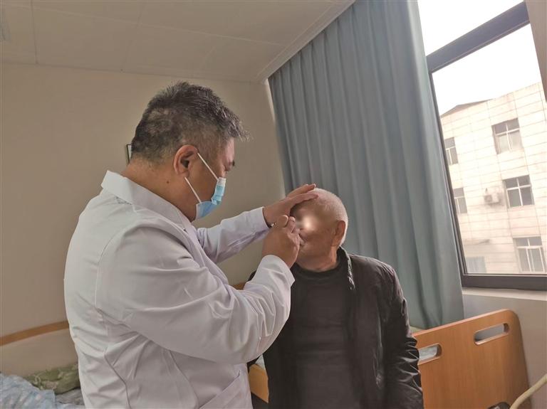 永乐中心卫生院医生为老年患者检查眼睛(资料照片)。 西咸新区融媒体中心供图