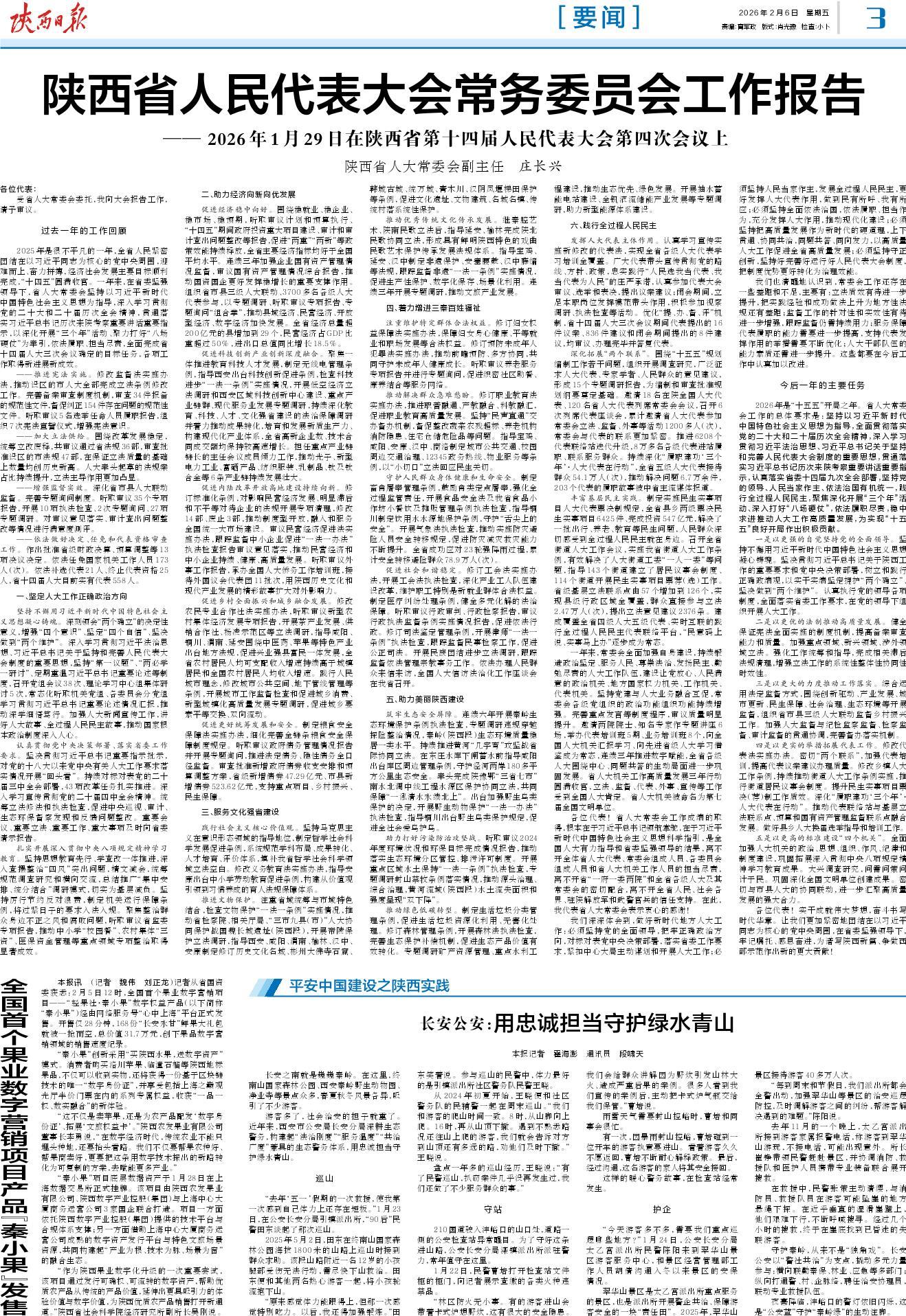 2025年是很不平凡的一年,全省人民紧密团结在以习近平同志为核心的党中央周围,迎难而上、奋力拼搏,经济社会发展主要目标顺利完成,“十四五”圆满收官。一年来,在省委坚强领导下,省人大常委会坚持以习近平新时代中国特色社会主义思想为指导,深入学习贯彻党的二十大和二十届历次全会精神,贯通落实习近平总书记历次来陕考察重要讲话重要指示,以深化开展“三个年”活动、聚力打好“八场硬仗”为牵引,依法履职、担当尽责,全面完成省十四届人大三次会议确定的目标任务,各项工作取得新进展新成效。