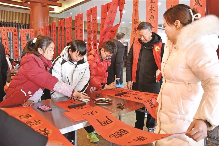 2月4日,洋县新时代文明实践中心联合多部门开展亲子写春联活动,30多组亲子家庭参与。志愿者现场讲解春联文化,书法家一对一指导,50多副春联新鲜出炉。图为孩子写春联。 本报通讯员 李刚摄