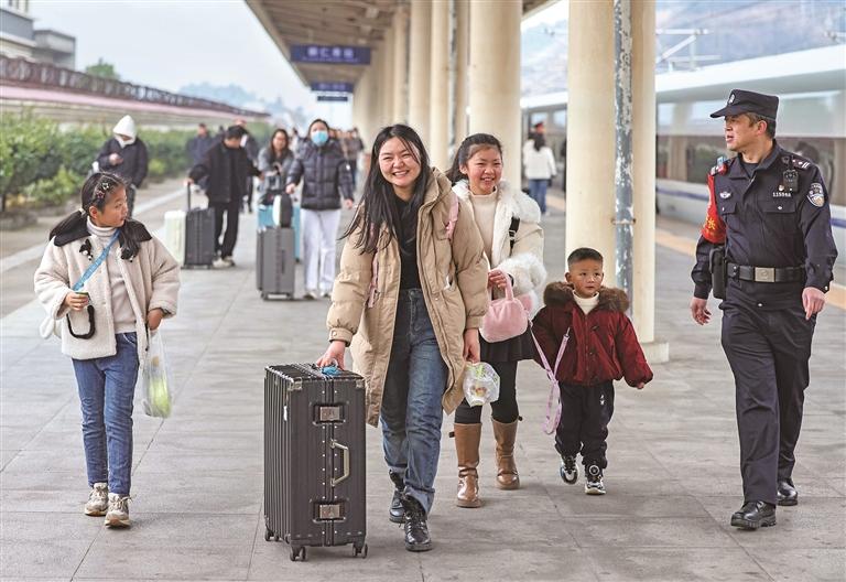 2月2日,旅客在沪昆高铁贵州铜仁南站转乘。当日,2026年春运启动,到3月13日结束。 新华社发(胡攀学摄)