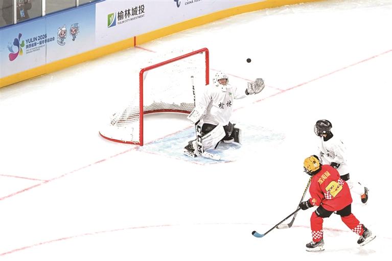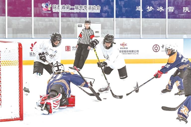 省一冬会“陕西能源杯”冰球比赛在科创新城滑冰馆举行。图为比赛现场。 中国图片社供图