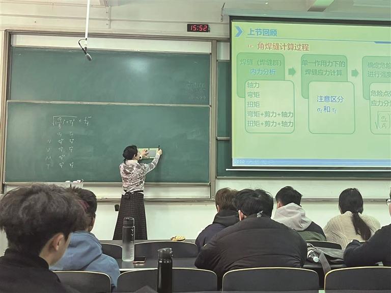 这背后,藏着青年女教师徐莹璐的育人巧思与深耕。徐莹璐通过工程事故视频巧妙引入,借助动画精准再现破坏形态,利用教学模型清晰展示复杂构件,将课堂知识与真实工程案例深度融合,让原本抽象复杂的钢结构知识变得直观易懂、生动鲜活。她的课堂成为学生探索工程奥秘、筑牢专业根基的“钥匙”,她用师者匠心为学生专业成长搭建向上的阶梯。